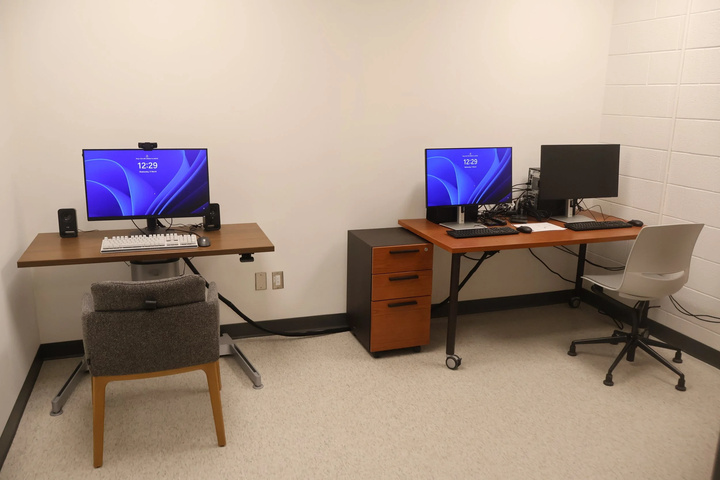 Our Eye Tracking Suite is where we conduct dyadic studies, paired with our Pupil Labs Neon glasses for eye tracking measures.